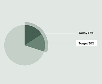The target is linked to our circular business model and aims to better utilise cars at the end of their usable life cycle. The target is for used spare parts for repair jobs in Sweden to reach 12 per cent by 2028. In 2024, the share of used spare parts was 7.5 per cent, compared to 7.0 per cent in the previous year. From 2024, the measurement is based on the sales value of spare parts and