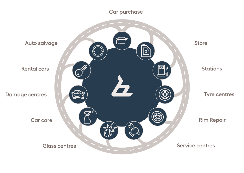 The Service Business includes services and concepts that simplify car ownership throughout a car’s life cycle. These encompass car servicing and repairs, spare parts, wheel storage, wheel sales, rim repair, glass repair and replacement, car dismantling, in-store and online sales.